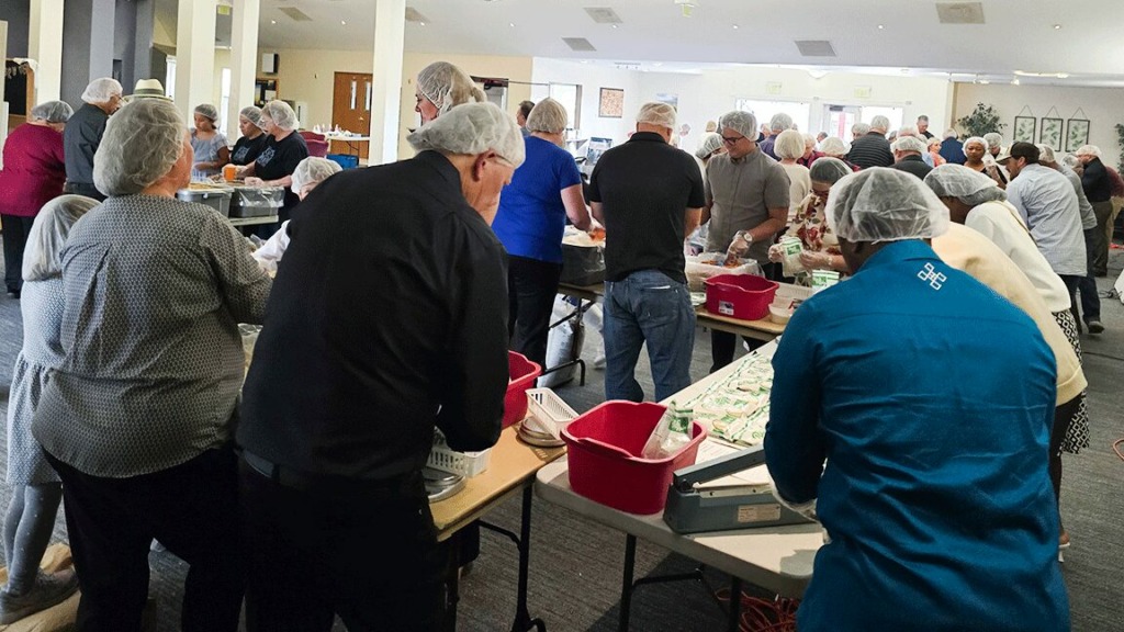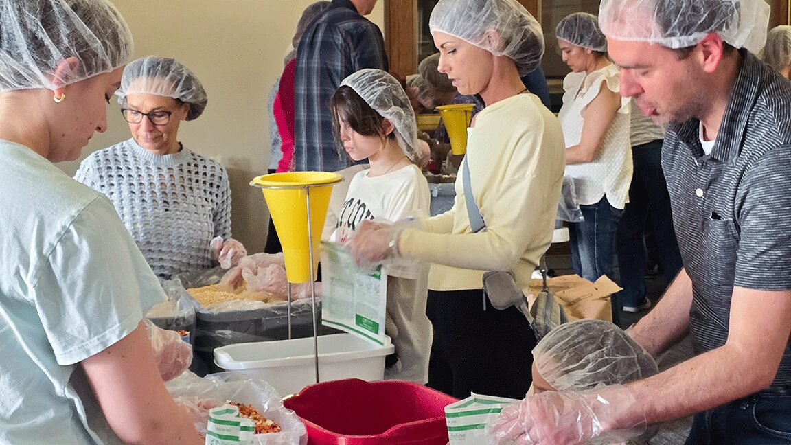 With hairnets and plastic gloves in place, over one hundred of the participants ranging in age from 3 to over 60 years chose an assembly-line position. It was teamwork at its finest: fun and fast. The task was completed in less than the projected hour and a half.